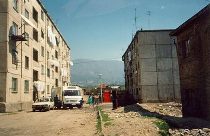Das 1. Bild zeigt einen gewoehnlichen Hinterhof am Rande von Tirana. Dort in der Naehe haben wir uns eine Tragehilfe "Linda" gekauft.